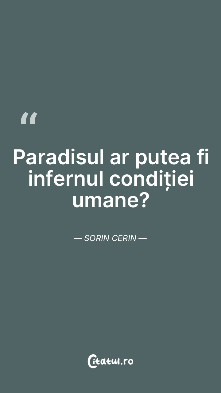 Paradisul ar putea fi infernul condiției umane? Sorin Cerin