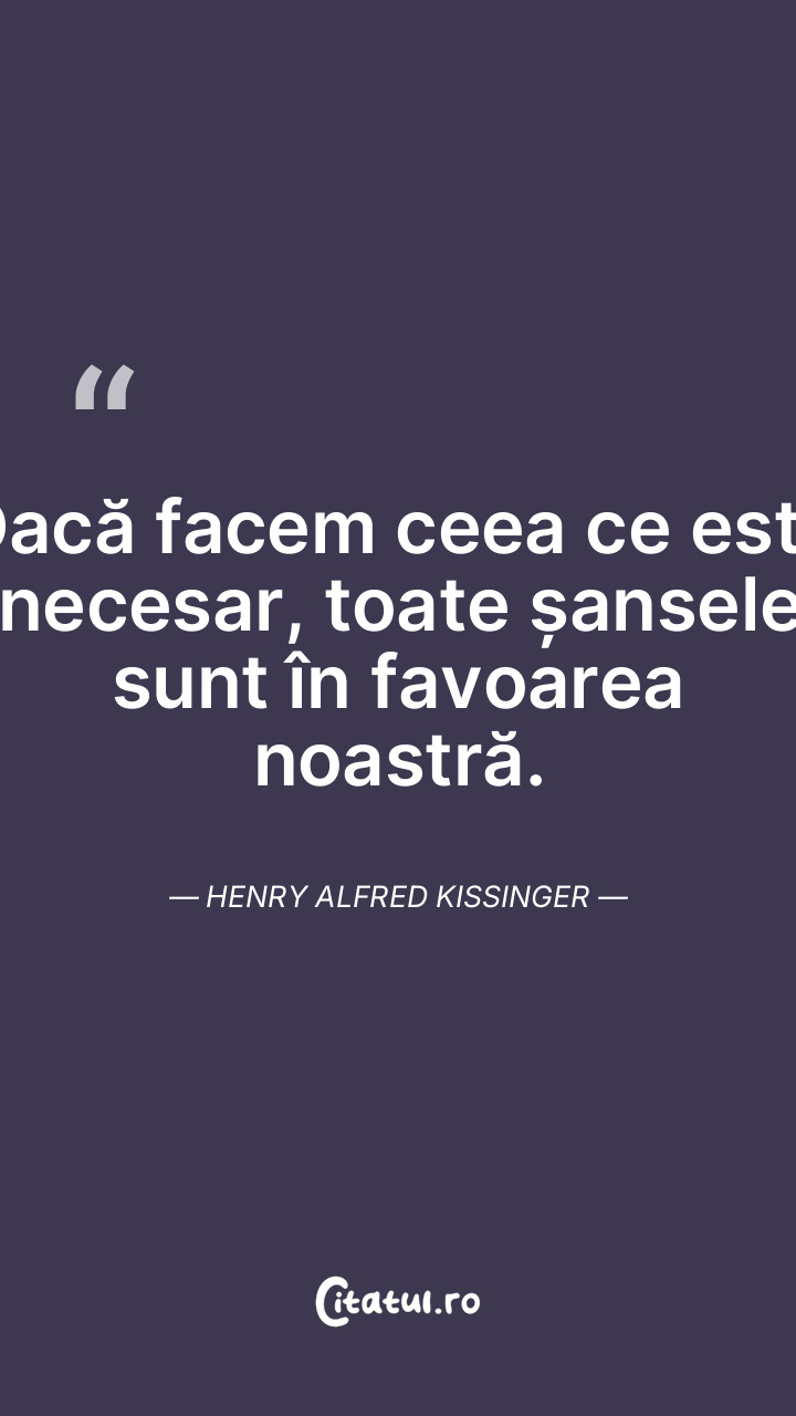 Dacă facem ceea ce este necesar, toate șansele sunt în favoarea noastră. Henry Alfred Kissinger