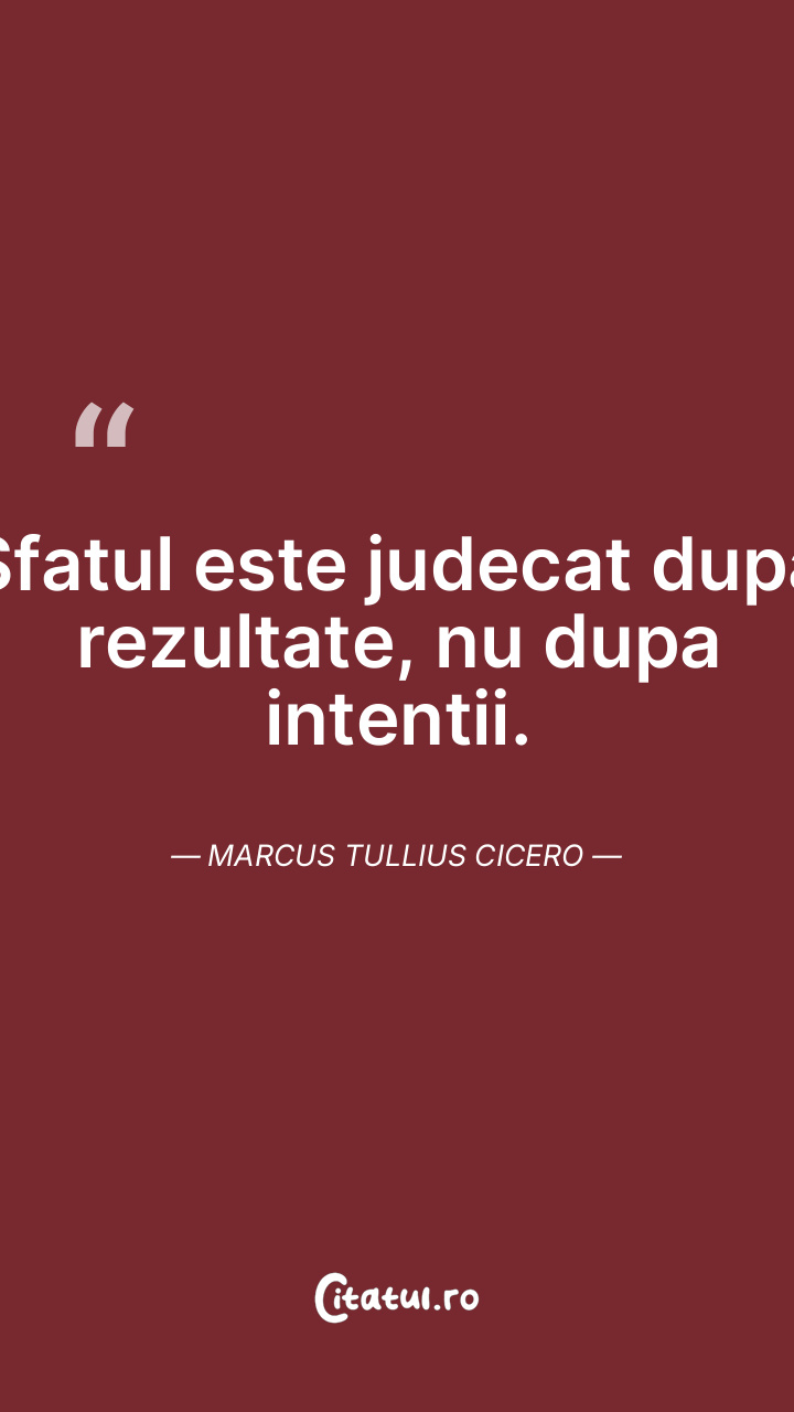 Sfatul este judecat dupa rezultate, nu dupa intentii. Marcus Tullius Cicero