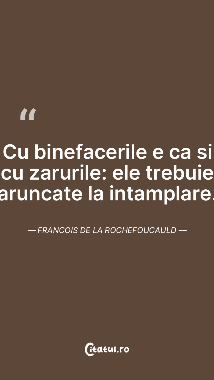 Cu binefacerile e ca si cu zarurile: ele trebuie aruncate la intamplare. Francois de la Rochefoucauld