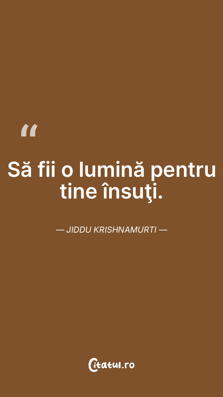 Să fii o lumină pentru tine însuţi. Jiddu Krishnamurti