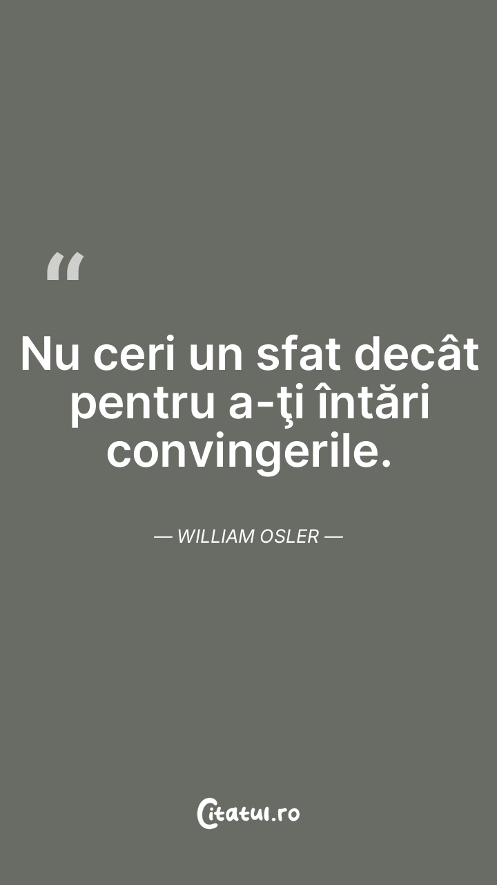 Nu ceri un sfat decât pentru a-ţi întări convingerile. William Osler