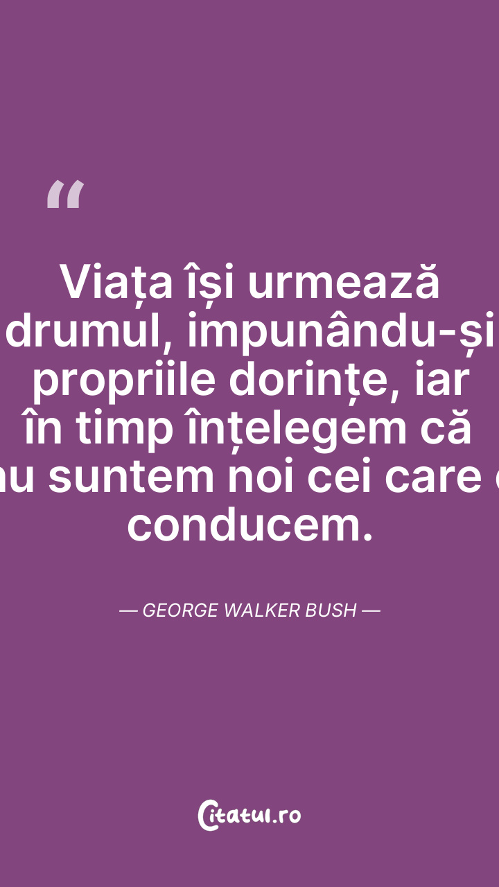Viața își urmează drumul, impunându-și propriile dorințe, iar în timp înțelegem că nu suntem noi cei care o conducem. George Walker Bush
