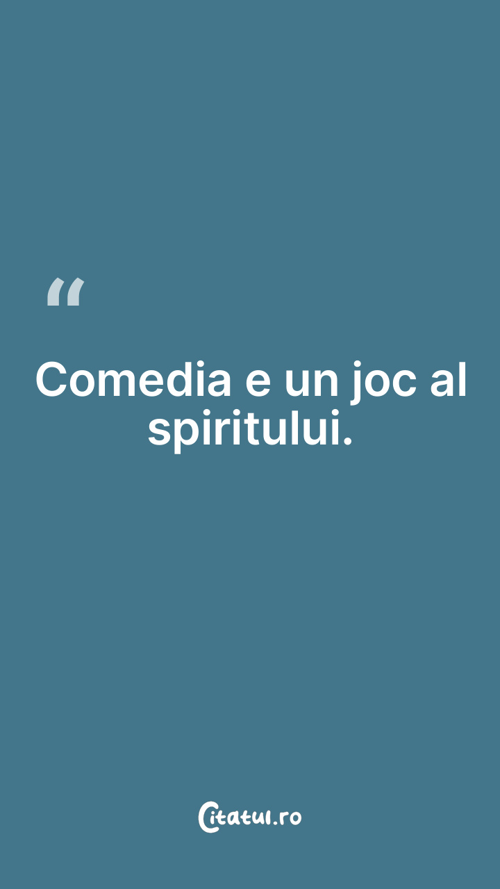 Comedia e un joc al spiritului. ... Categorie: citate spiritualitate Dificultate: Foarte ușor de citit! Votează: ★ ★ ★ ★ ★ (0/5 din 0) Distribuiți acest citat? Alegeți platforma preferată: Salvează citatul in telefon/pc Comedia e un joc al spiritului. Copiază Favorite Eroare