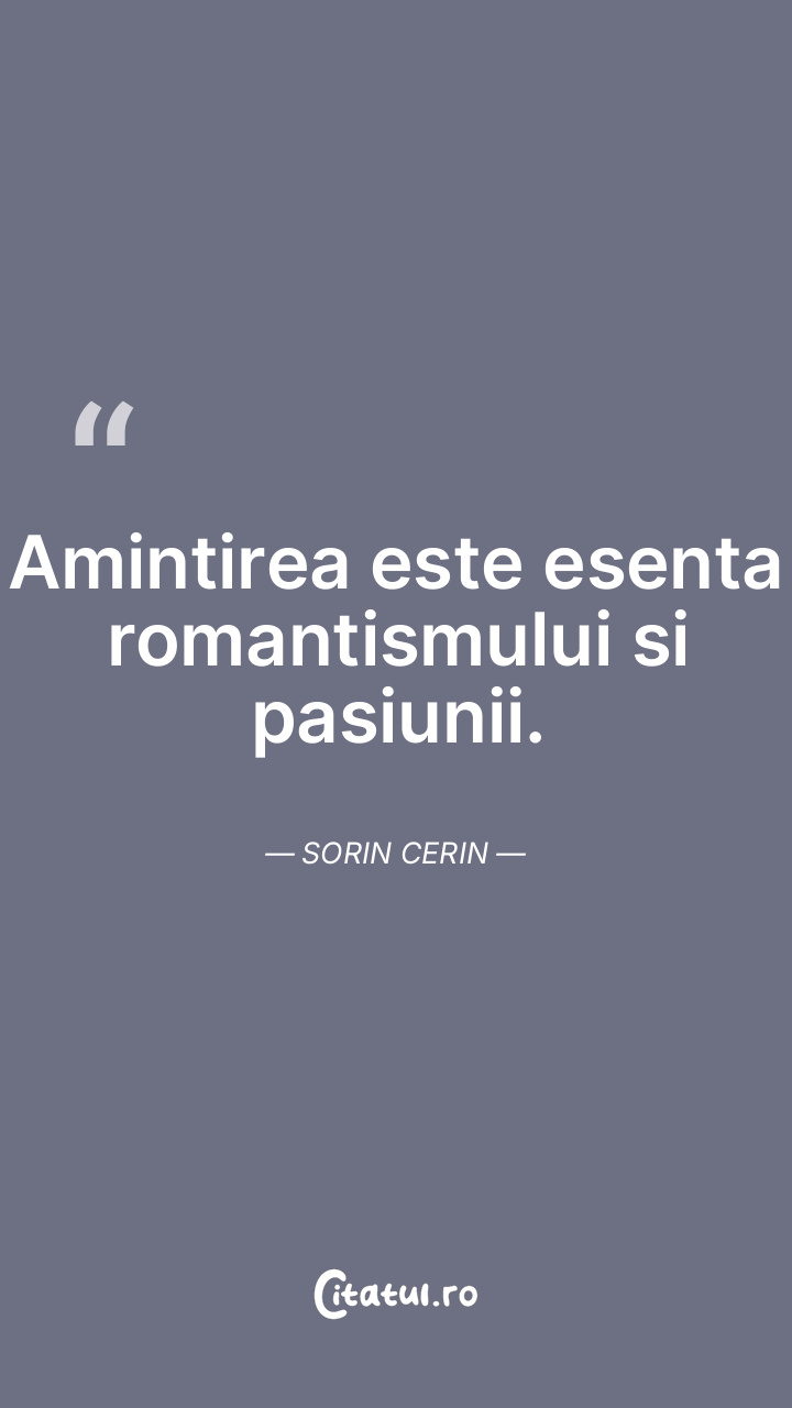 Amintirea este esenta romantismului si pasiunii. Sorin Cerin