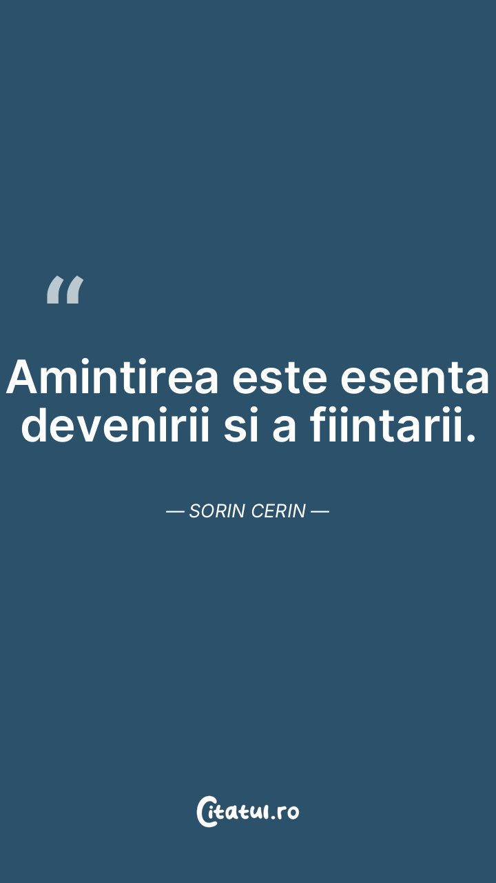 Amintirea este esenta devenirii si a fiintarii. Sorin Cerin