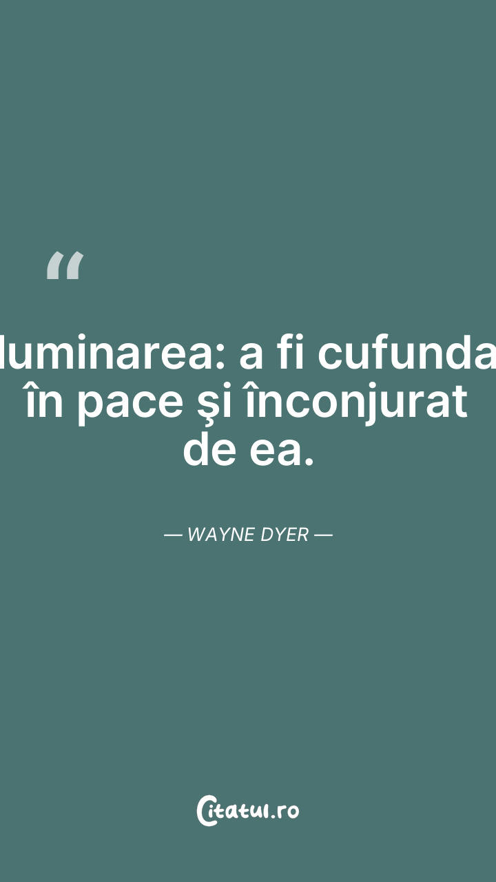 Iluminarea: a fi cufundat în pace şi înconjurat de ea. Wayne Dyer