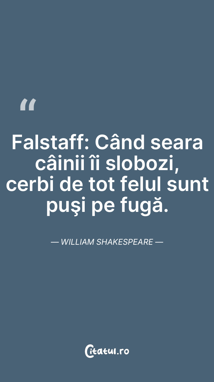 Falstaff: Când seara câinii îi slobozi, cerbi de tot felul sunt puşi pe fugă. William Shakespeare