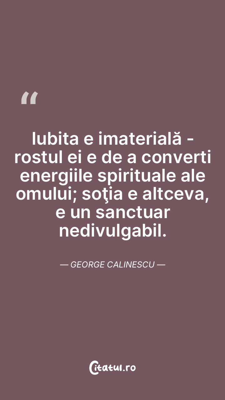 Iubita e imaterială - rostul ei e de a converti energiile spirituale ale omului; soţia e altceva, e un sanctuar nedivulgabil. George Calinescu