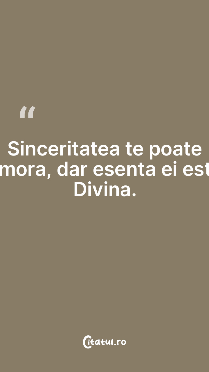 Sinceritatea te poate omora, dar esenta ei este Divina.