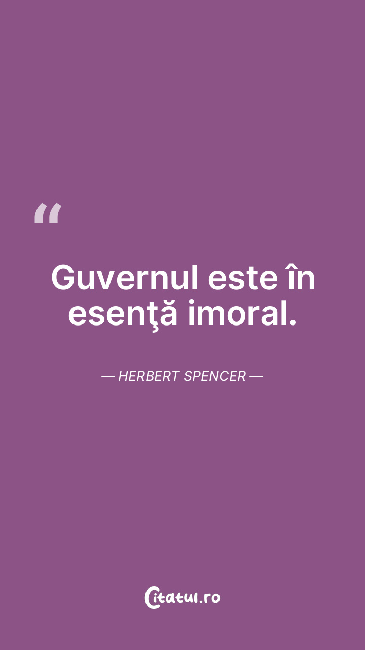 Guvernul este în esenţă imoral. Herbert Spencer ...