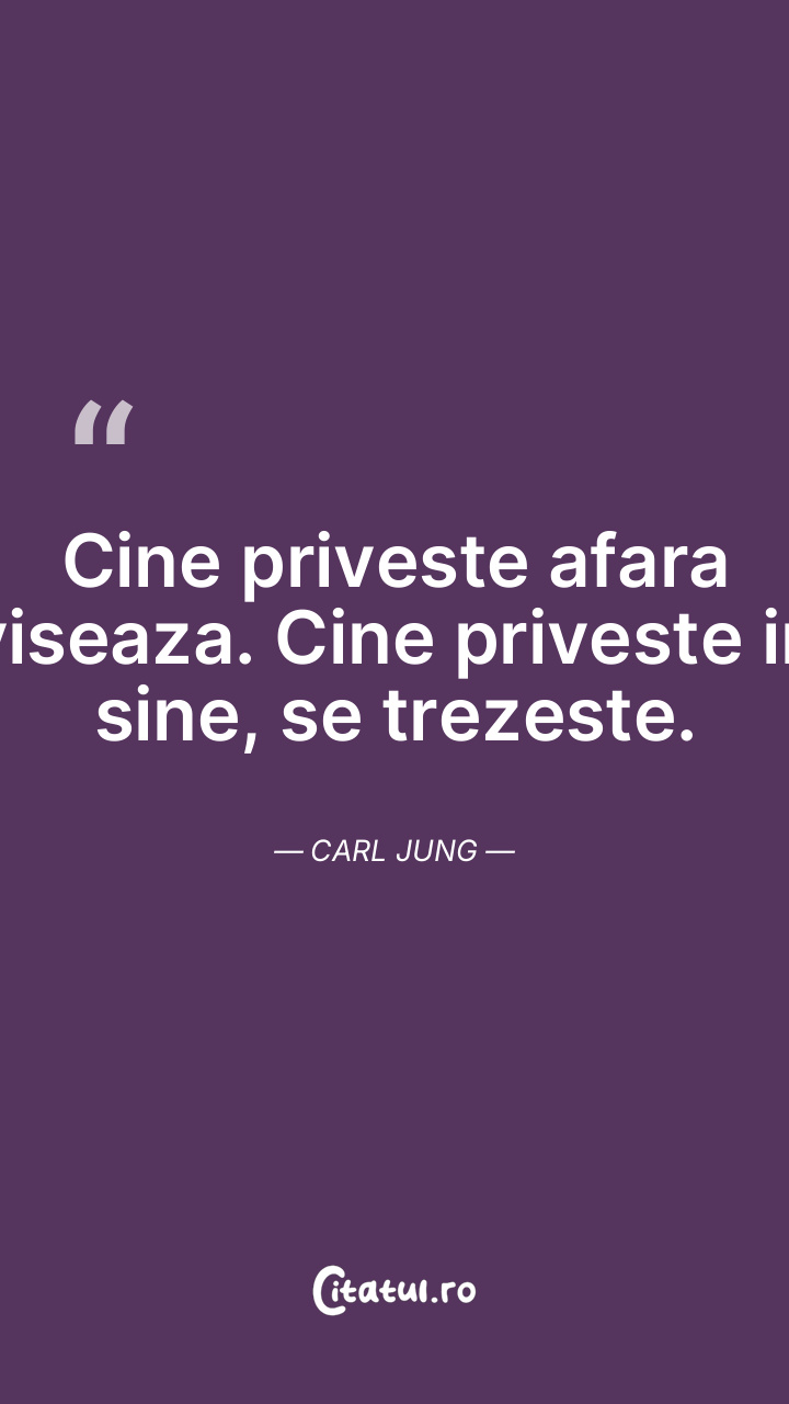 Cine priveste afara viseaza. Cine priveste in sine, se trezeste. Carl Jung