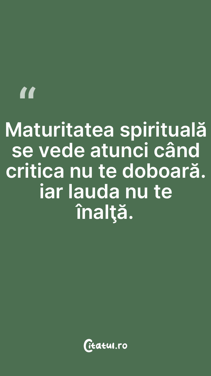 Maturitatea spirituală se vede atunci când critica nu te doboară. iar lauda nu te înalţă.