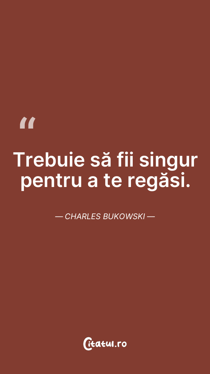 Trebuie să fii singur pentru a te regăsi. Charles Bukowski