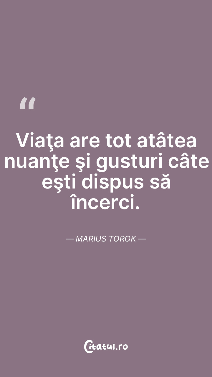 Viaţa are tot atâtea nuanţe şi gusturi câte eşti dispus să încerci. Marius Torok
