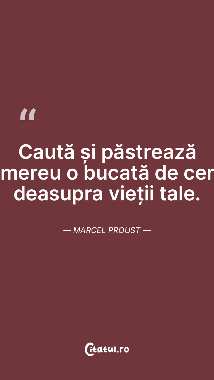 Caută și păstrează mereu o bucată de cer deasupra vieții tale. Marcel Proust