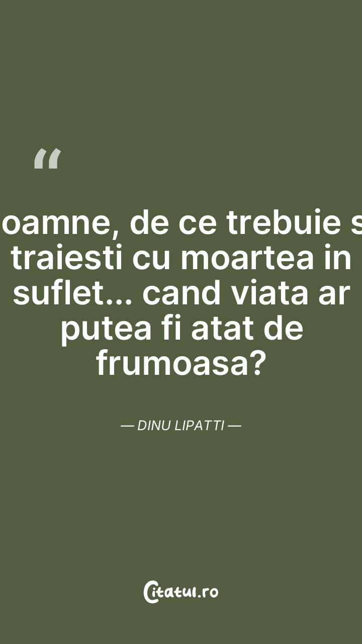 Doamne, de ce trebuie sa traiesti cu moartea in suflet... cand viata ar putea fi atat de frumoasa? Dinu Lipatti