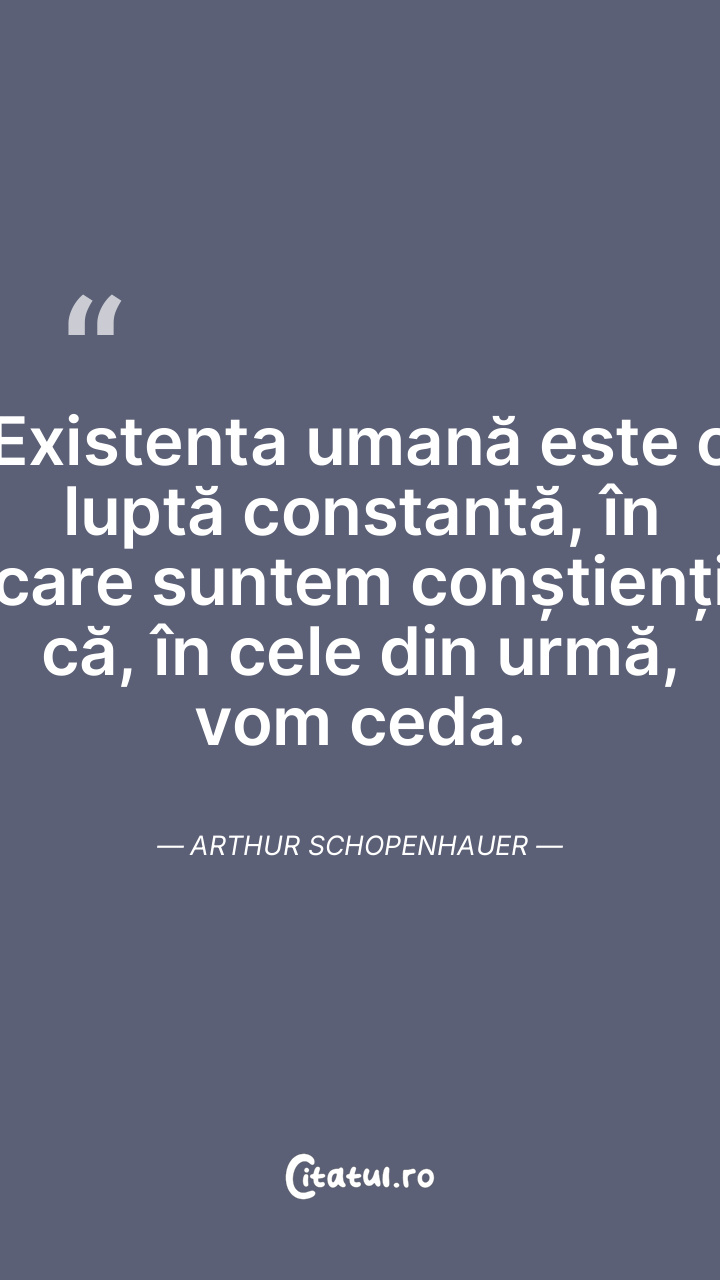 Existenta umană este o luptă constantă, în care suntem conștienți că, în cele din urmă, vom ceda. Arthur Schopenhauer