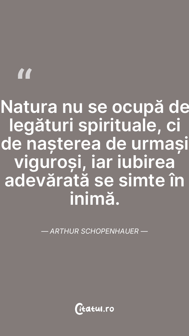 Natura nu se ocupă de legături spirituale, ci de nașterea de urmași viguroși, iar iubirea adevărată se simte în inimă. Arthur Schopenhauer