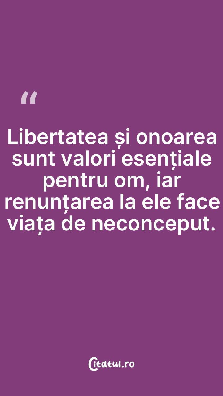 Libertatea și onoarea sunt valori esențiale pentru om, iar renunțarea la ele face viața de neconceput.