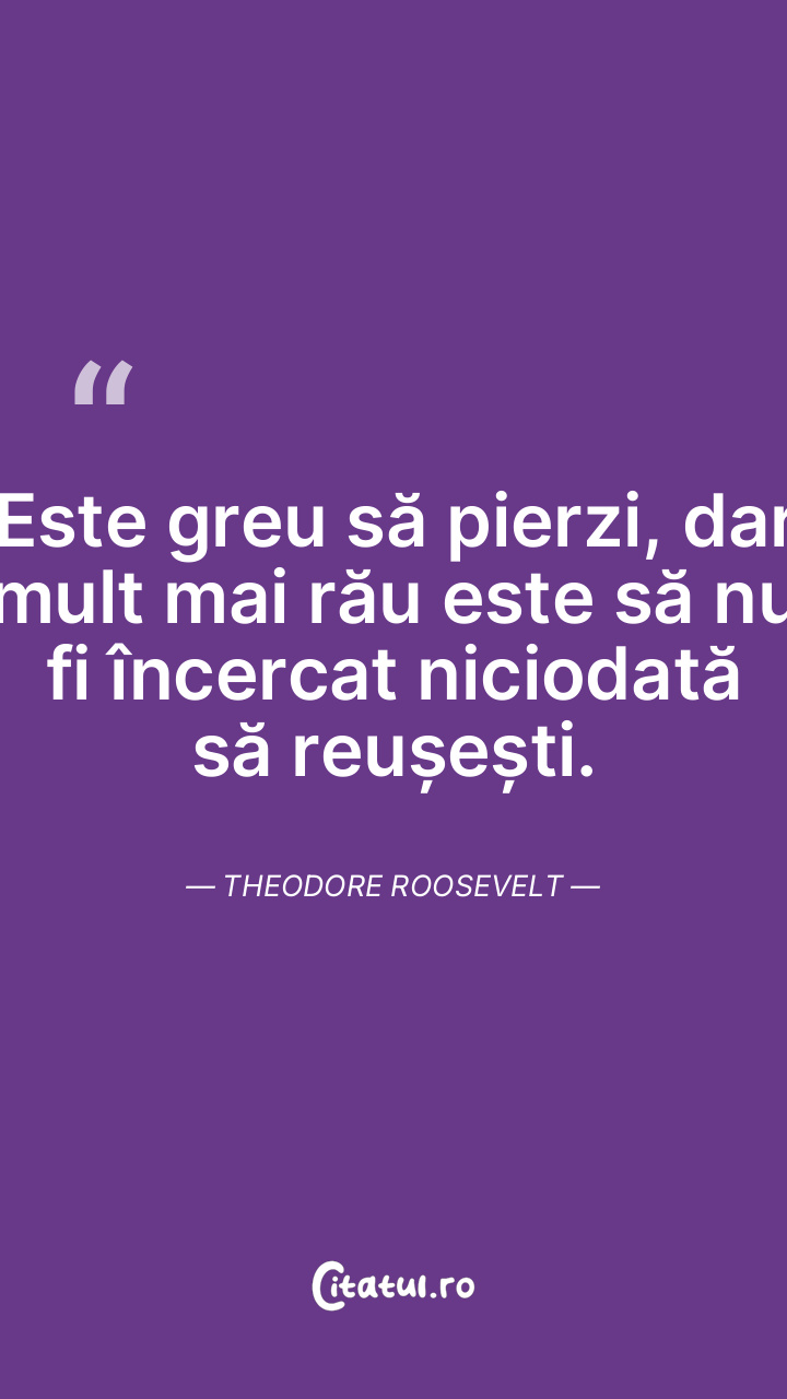 Este greu să pierzi, dar mult mai rău este să nu fi încercat niciodată să reușești. Theodore Roosevelt