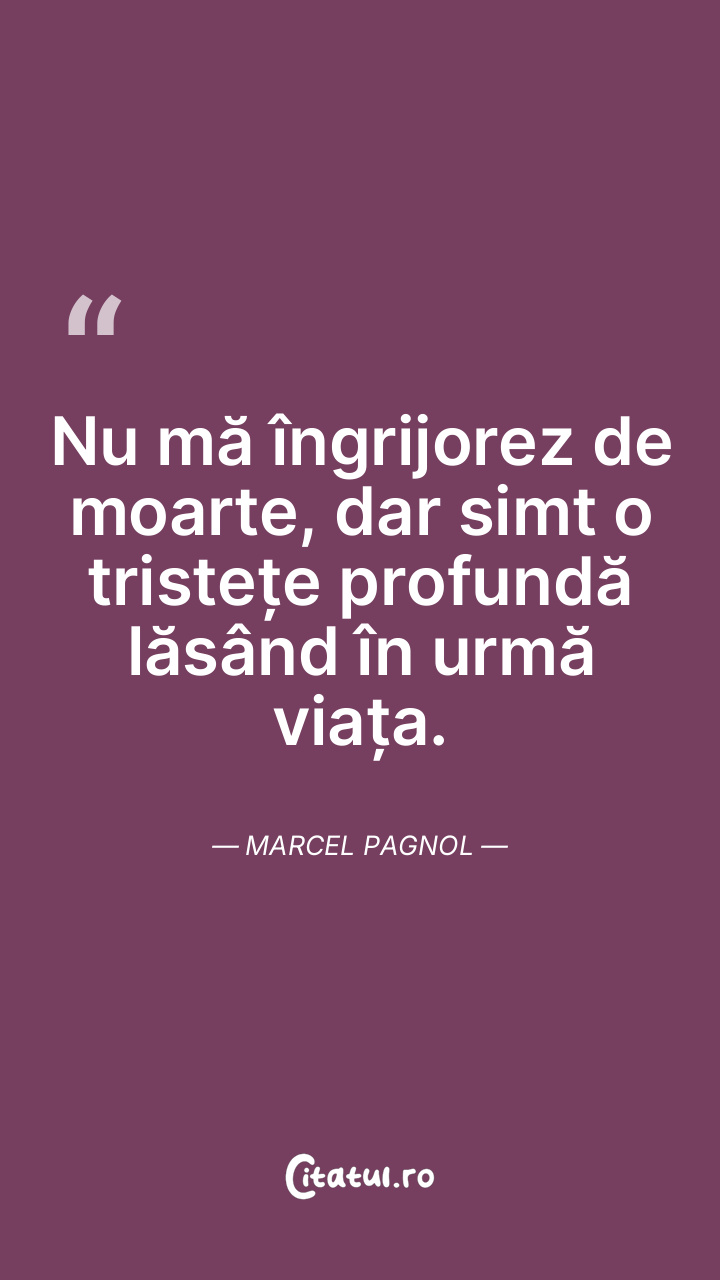 Nu mă îngrijorez de moarte, dar simt o tristețe profundă lăsând în urmă viața. Marcel Pagnol