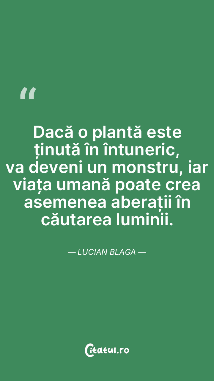 Dacă o plantă este ținută în întuneric, va deveni un monstru, iar viața umană poate crea asemenea aberații în căutarea luminii. Lucian Blaga