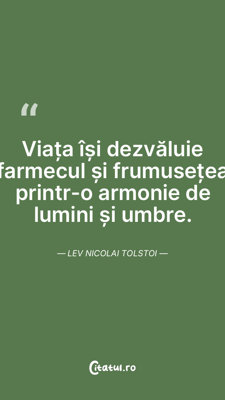 Viața își dezvăluie farmecul și frumusețea printr-o armonie de lumini și umbre. Lev Nicolai Tolstoi