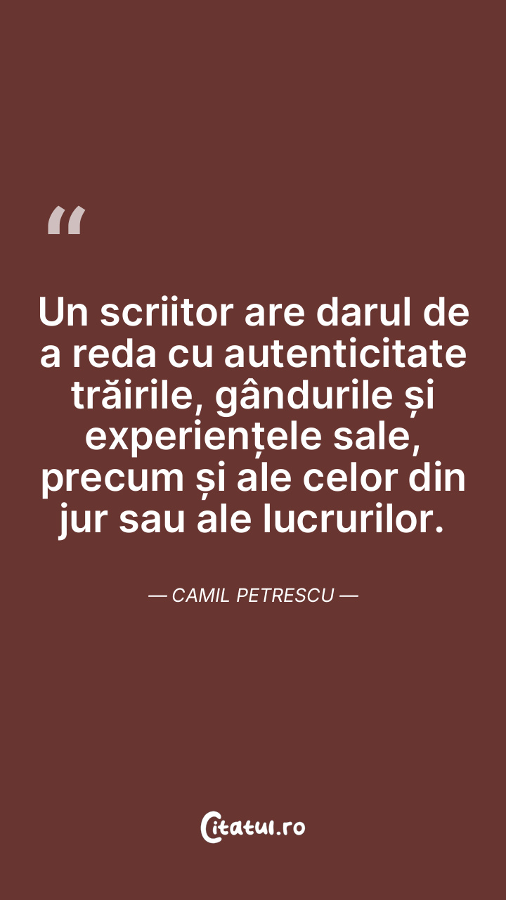 Un scriitor are darul de a reda cu autenticitate trăirile, gândurile și experiențele sale, precum și ale celor din jur sau ale lucrurilor. Camil Petrescu