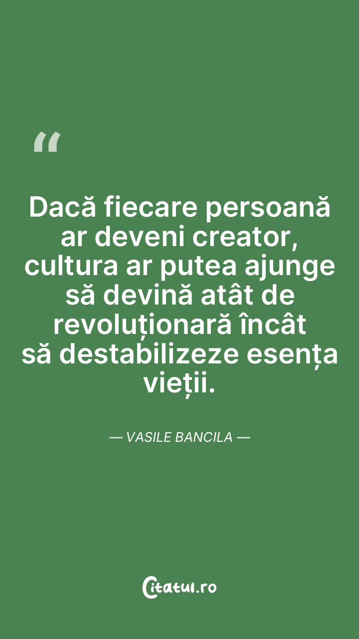 Dacă fiecare persoană ar deveni creator, cultura ar putea ajunge să devină atât de revoluționară încât să destabilizeze esența vieții. Vasile Bancila