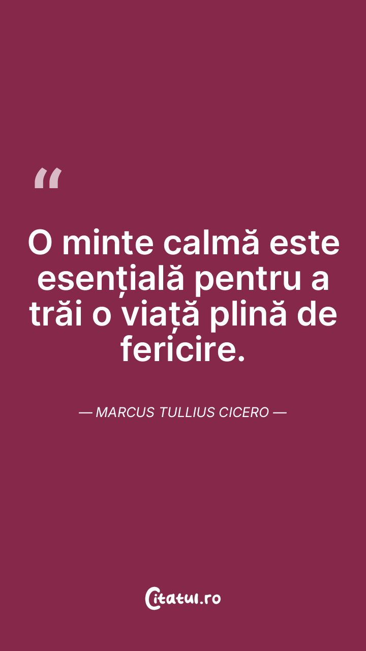 O minte calmă este esențială pentru a trăi o viață plină de fericire. Marcus Tullius Cicero