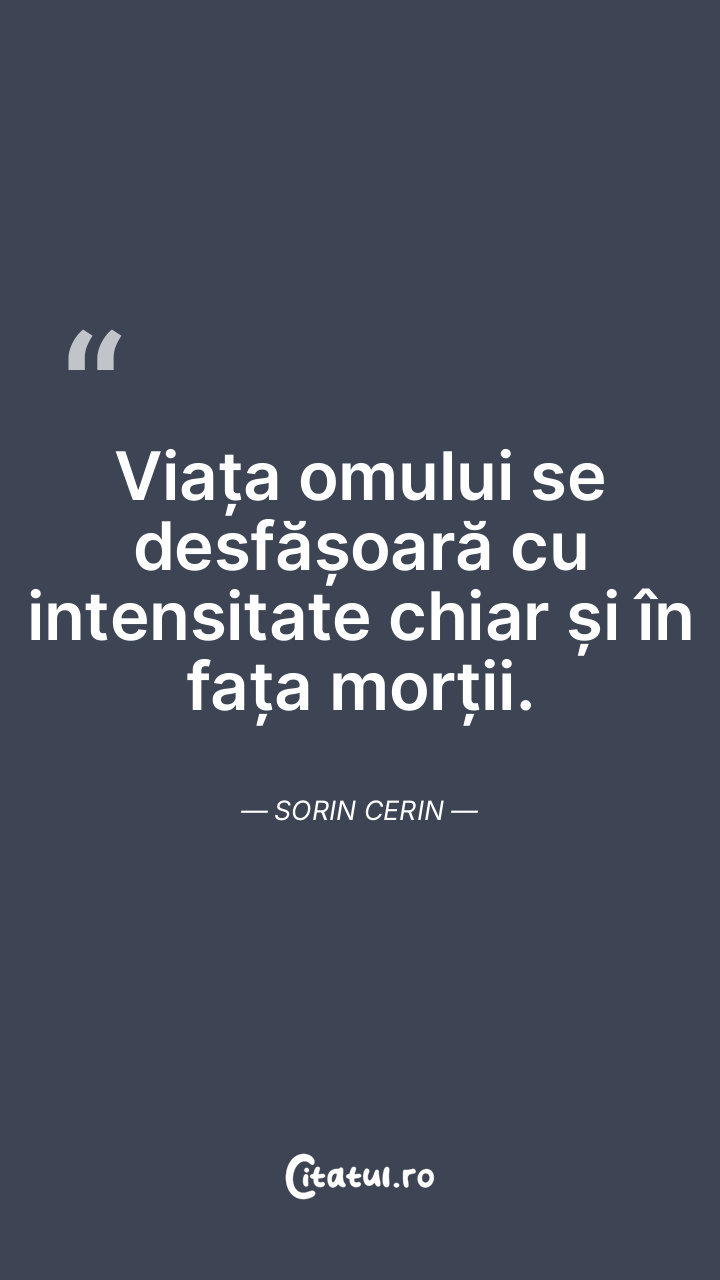 Viața omului se desfășoară cu intensitate chiar și în fața morții. Sorin Cerin