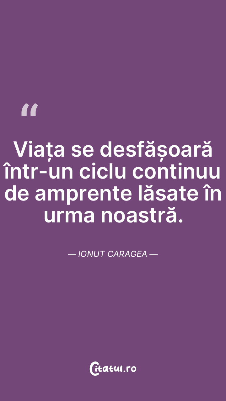 Viața se desfășoară într-un ciclu continuu de amprente lăsate în urma noastră. Ionut Caragea