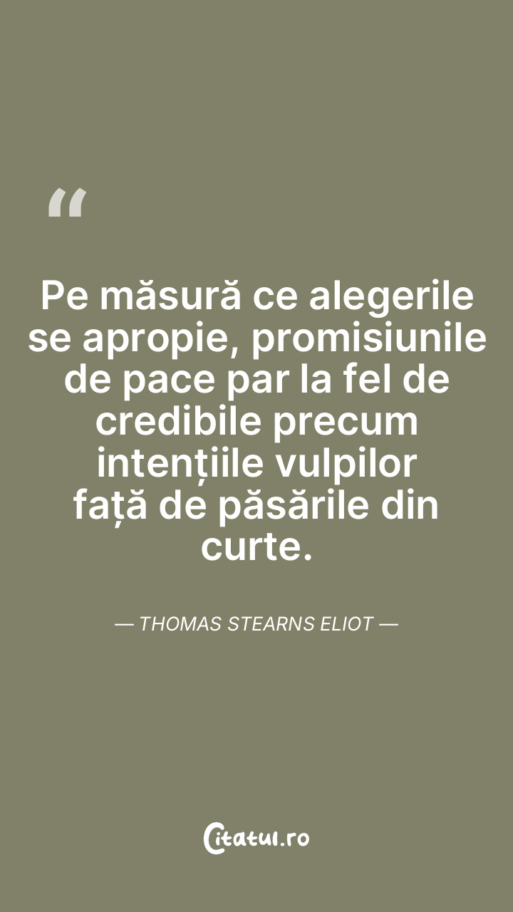 Pe măsură ce alegerile se apropie, promisiunile de pace par la fel de credibile precum intențiile vulpilor față de păsările din curte. Thomas Stearns Eliot