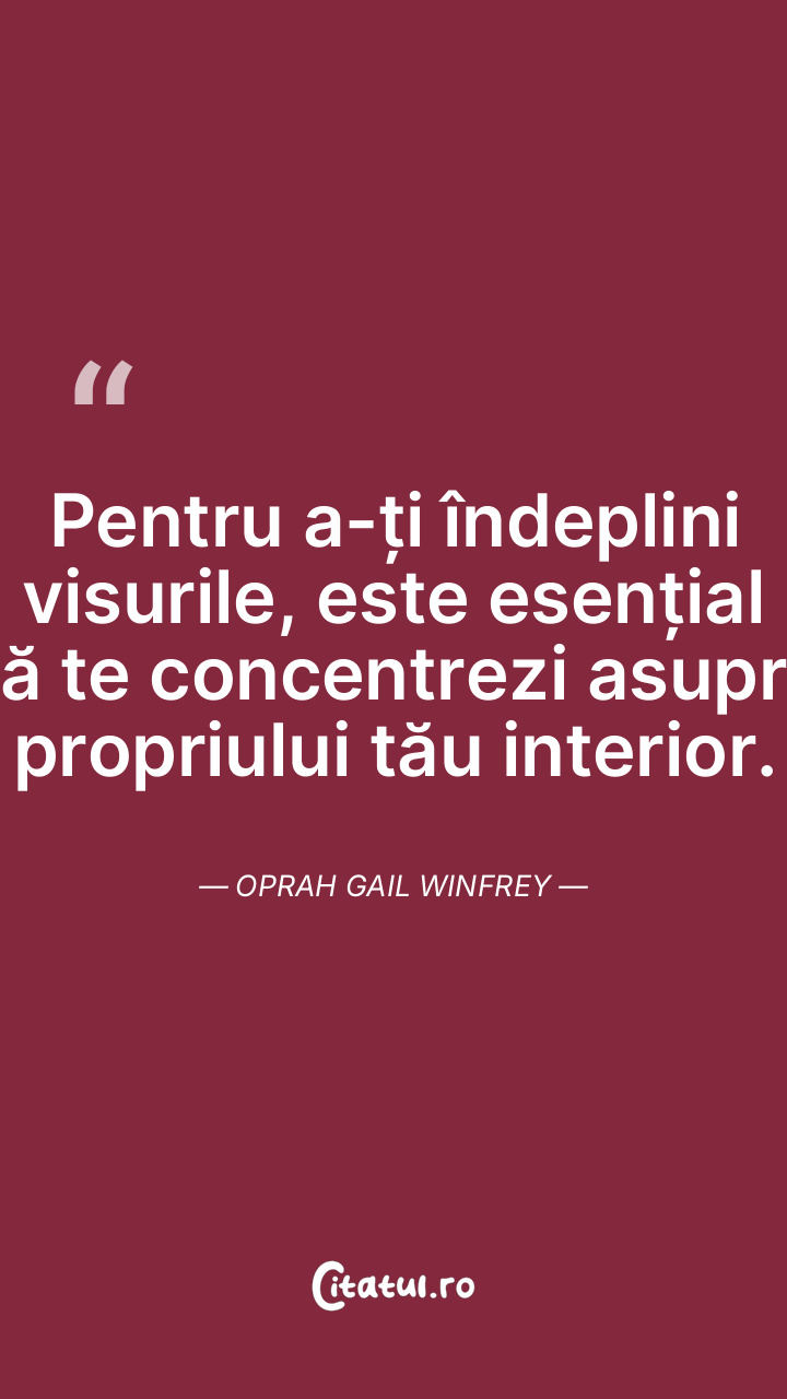 Pentru a-ți îndeplini visurile, este esențial să te concentrezi asupra propriului tău interior. Oprah Gail Winfrey