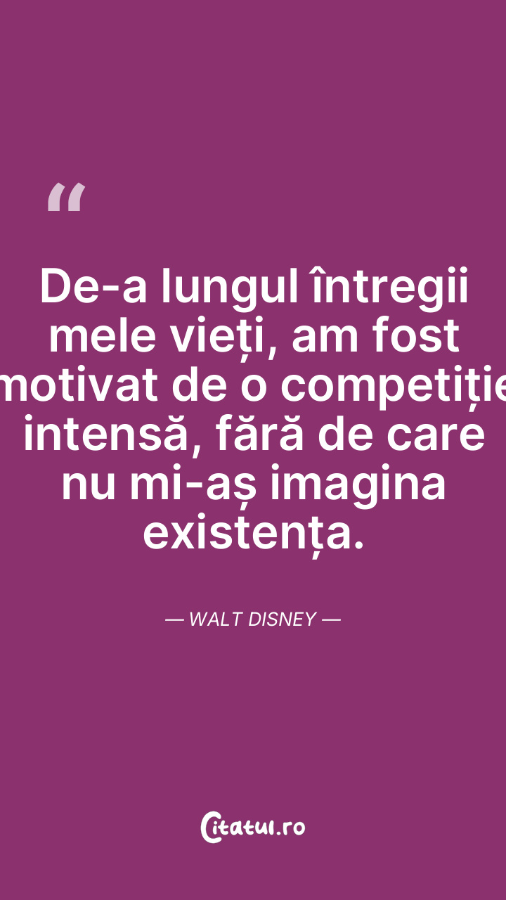 De-a lungul întregii mele vieți, am fost motivat de o competiție intensă, fără de care nu mi-aș imagina existența. Walt Disney