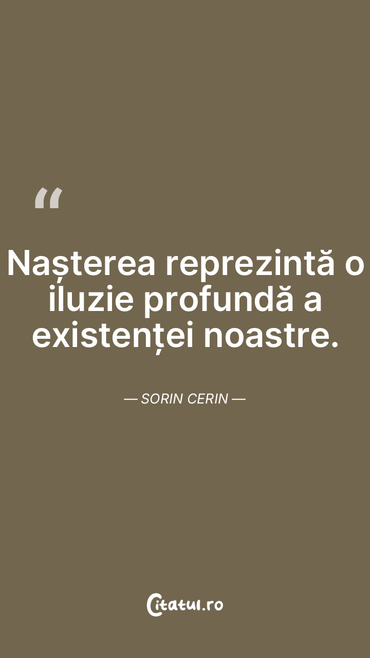 Nașterea reprezintă o iluzie profundă a existenței noastre. Sorin Cerin