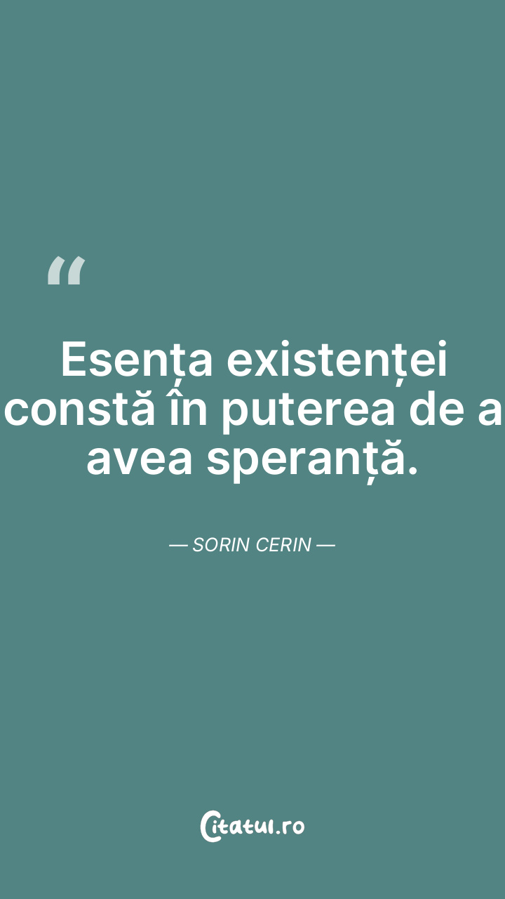 Esența existenței constă în puterea de a avea speranță. Sorin Cerin