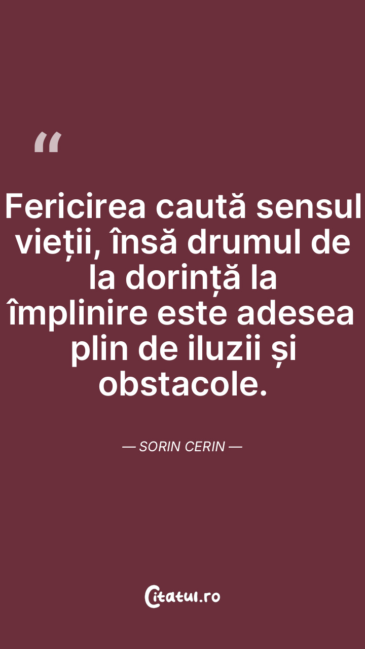 Fericirea caută sensul vieții, însă drumul de la dorință la împlinire este adesea plin de iluzii și obstacole. Sorin Cerin