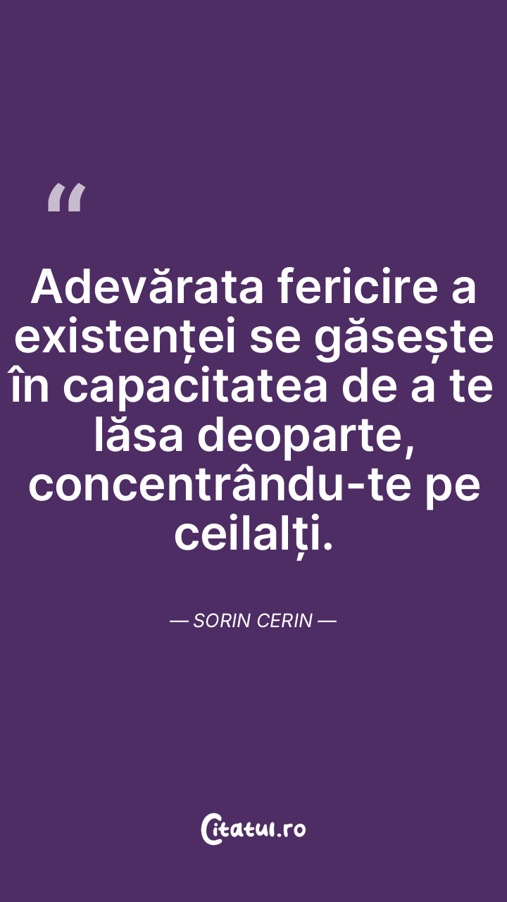 Adevărata fericire a existenței se găsește în capacitatea de a te lăsa deoparte, concentrându-te pe ceilalți. Sorin Cerin