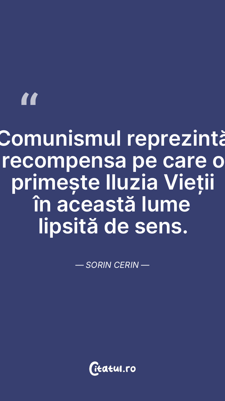 Comunismul reprezintă recompensa pe care o primește Iluzia Vieții în această lume lipsită de sens. Sorin Cerin