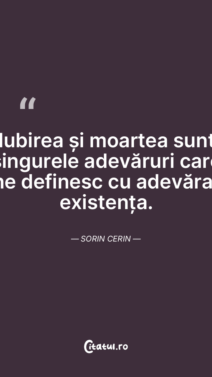 Iubirea și moartea sunt singurele adevăruri care ne definesc cu adevărat existența. Sorin Cerin