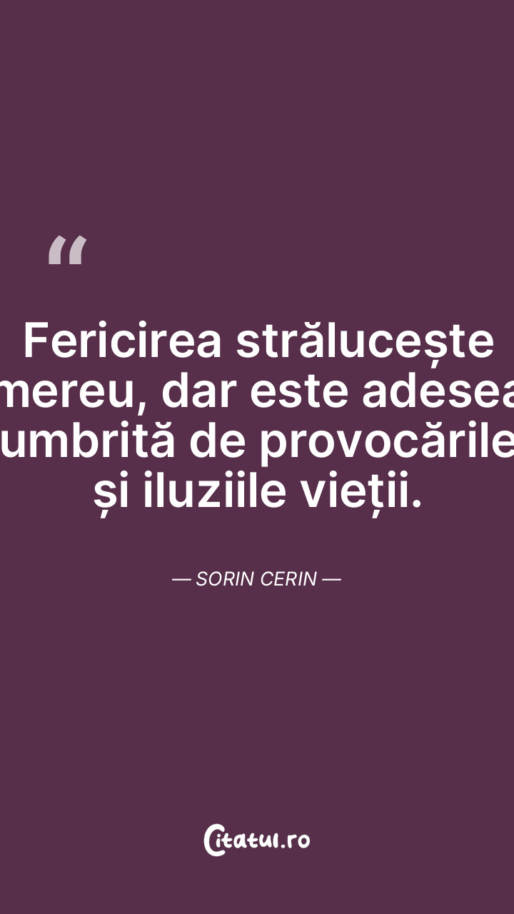 Fericirea strălucește mereu, dar este adesea umbrită de provocările și iluziile vieții. Sorin Cerin