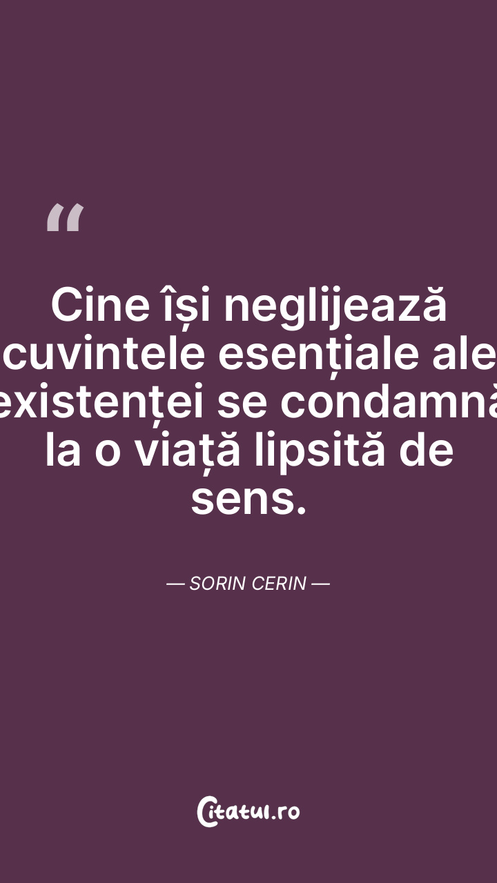 Cine își neglijează cuvintele esențiale ale existenței se condamnă la o viață lipsită de sens. Sorin Cerin