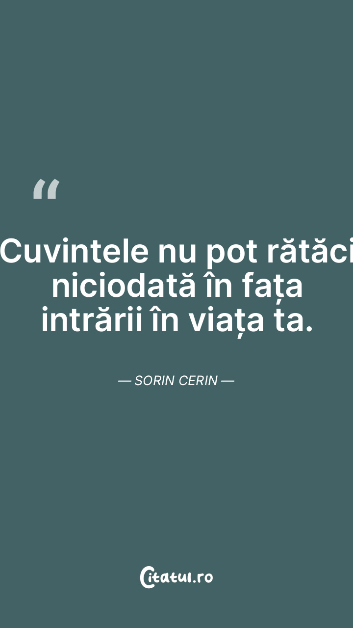 Cuvintele nu pot rătăci niciodată în fața intrării în viața ta. Sorin Cerin