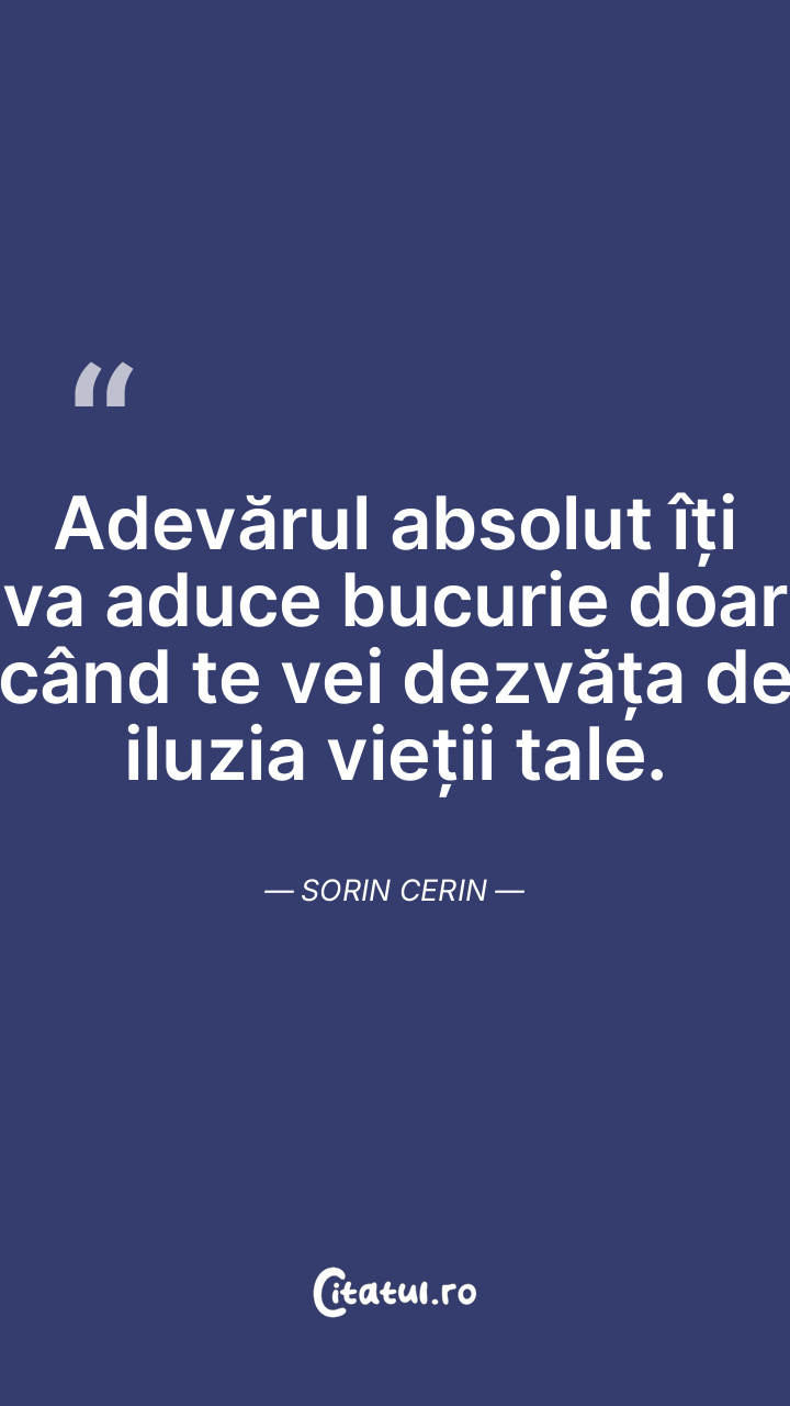 Adevărul absolut îți va aduce bucurie doar când te vei dezvăța de iluzia vieții tale. Sorin Cerin