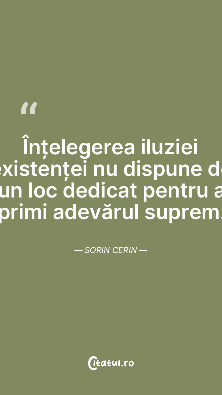Înțelegerea iluziei existenței nu dispune de un loc dedicat pentru a primi adevărul suprem. Sorin Cerin