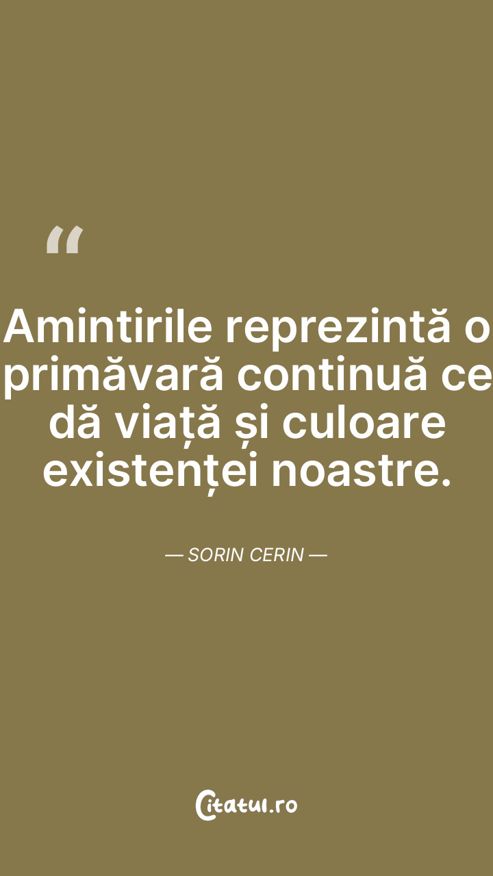Amintirile reprezintă o primăvară continuă ce dă viață și culoare existenței noastre. Sorin Cerin