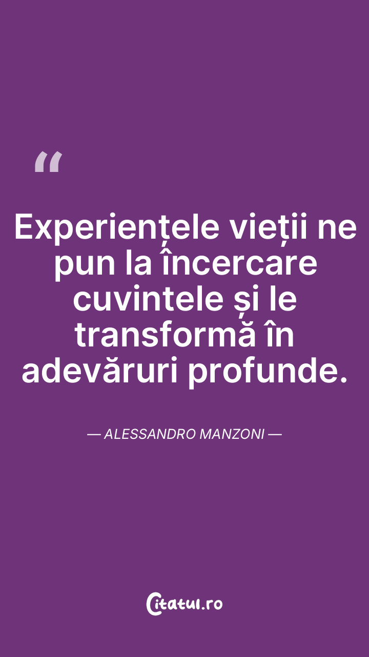 Experiențele vieții ne pun la încercare cuvintele și le transformă în adevăruri profunde. Alessandro Manzoni