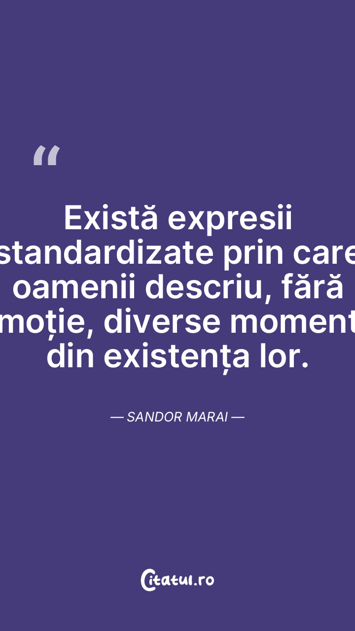Există expresii standardizate prin care oamenii descriu, fără emoție, diverse momente din existența lor. Sandor Marai